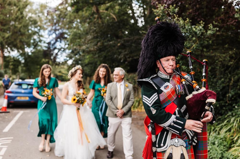 "Robert performed at my son’s wedding. He was amazing. He made the day truly special and memorable. He was professional from the initial contact through to the event’s conclusion. He piped the bride from the hotel through the village to our parish church. And as an extra surprise, composed a special wedding march. He also processed the bride and groom into the wedding reception."